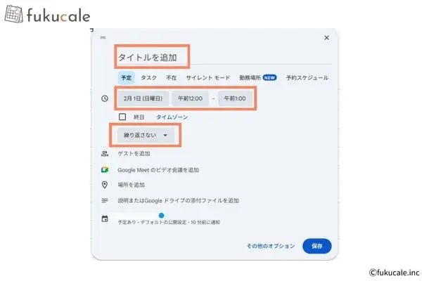 新しい予定の作成方法は以下です。