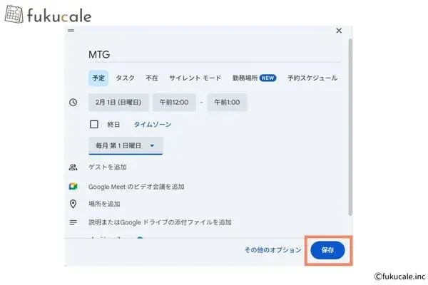 Google Meetと連携してオンライン会議を設定する