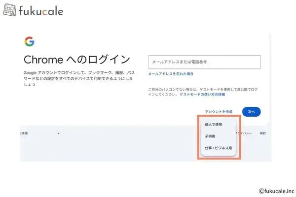 - [個人で使用][子供用][仕事/ビジネス用]から該当する項目を選ぶ※基本的には[個人で使用]を選びます