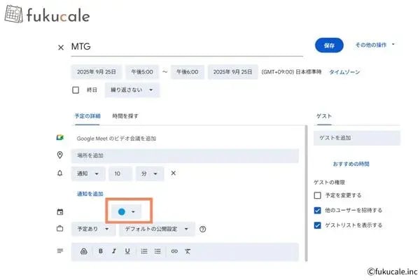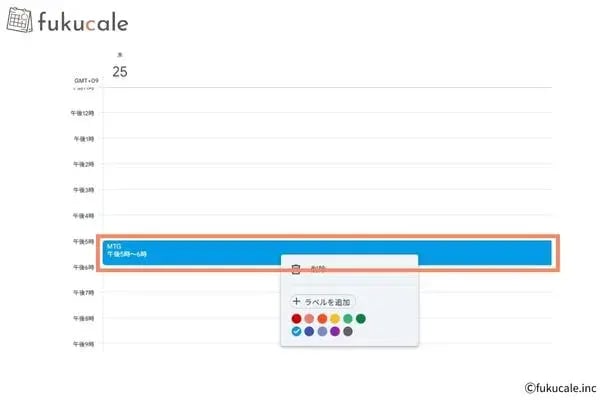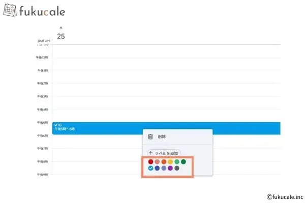 ラベルの作成後は、予定ごとにラベルを選択するだけで、指定した色が自動的に反映されます。(ラベルの作り方は次の章で紹介します。)