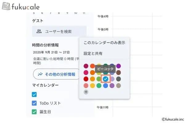 Googleカレンダーでは、カレンダーごとにも色を設定できます。