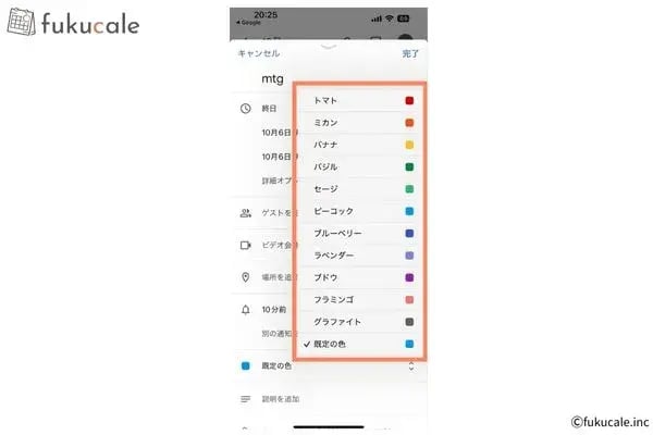 この方法では、予定のタイトルや時間の修正も同時に行えますが、色を変えるだけなら手順1〜4で操作するほうが手早く済みます。