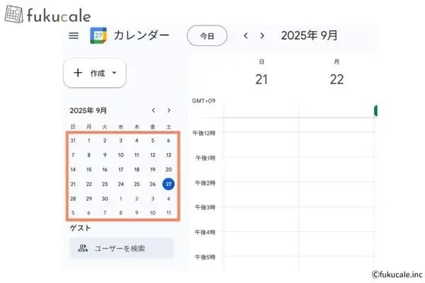 - 画面左の「マイカレンダー」の下に表示される「該当のカレンダー名」にカーソルを合わせる