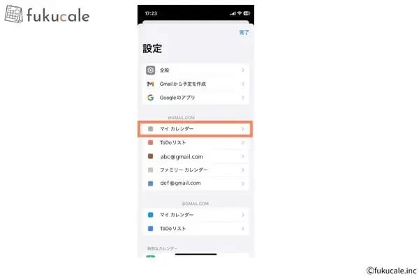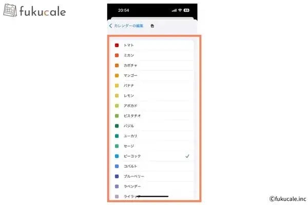 - 表示されたカレンダーの一覧から、色を変えたいカレンダーを選ぶ