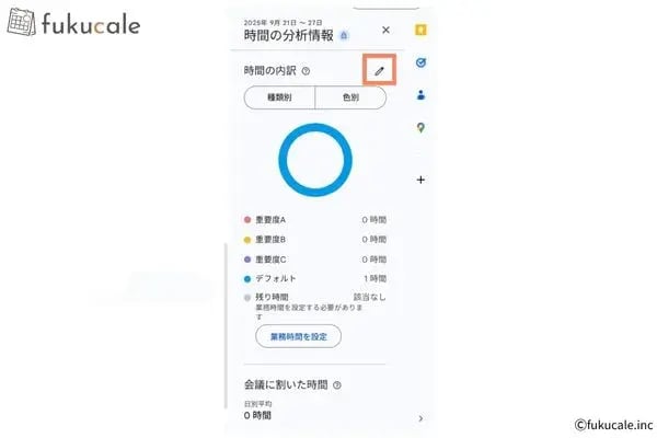 時間の分析情報が表示されたら、「時間の内訳」横にある[えんぴつマーク]をクリックし、「色のラベル」のポップアップを開きます。