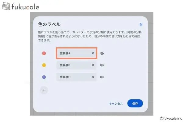 たとえば、「重要度」や「プロジェクト」別にラベルを用意しておけば、手間なく分類してわかりやすく予定を整理できます。