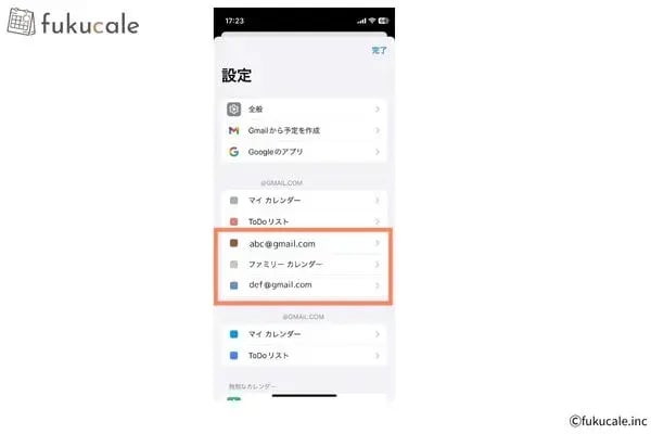 「仕事用カレンダーは青」「家族用カレンダーはオレンジ」と決めておくと、どの予定がどのカレンダーに属しているかが一目でわかります。