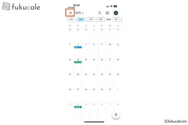 画面左上にある[×]>[<]をタップするとカレンダー画面に戻ります。