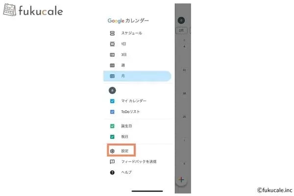 - 画面左上の[カレンダーの編集]>[設定]をタップする