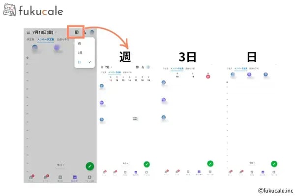 | ②カレンダー表示 | 週・3日・日表示のみ | 月表示や日数指定も可能 |