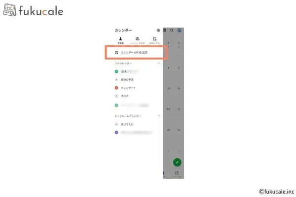 「チームで予定を管理したい」「プライベートな予定専用のカレンダーを作りたい」場合は、以下の手順で共有カレンダー(マイカレンダー)を新たに作成します。