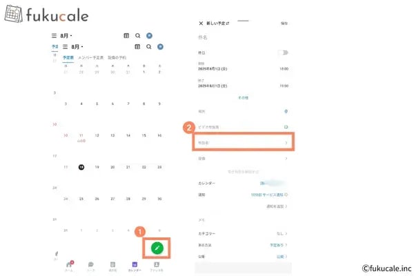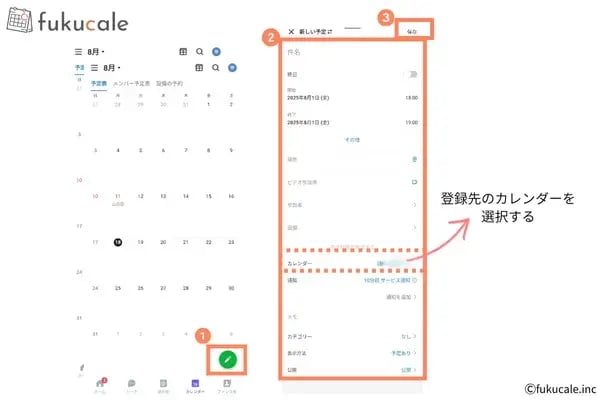 基本カレンダー・共有カレンダー・トークルームカレンダーのいずれでも、予定の作成手順は同じです。