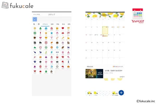 Yahoo!カレンダーは、多彩なスタンプを使って1秒で予定を登録できる手軽さが魅力です。