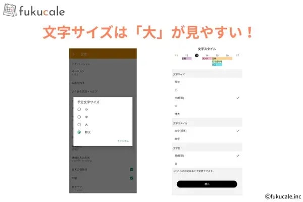 大きな文字や見やすいフォントに変更できるアプリは、予定の見落としや誤入力を防げます。