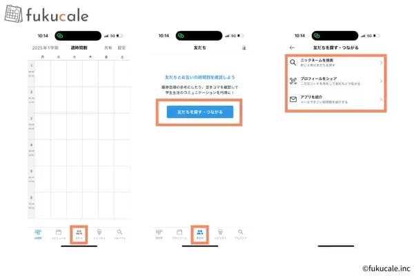 すごい時間割では、ほかの大学の友達とも連携できます。