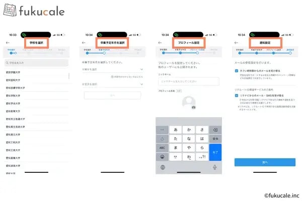 正しい大学名で入力しても表示されない場合は、学校種別の選択画面で一旦[その他]を選択して登録を完了させます。