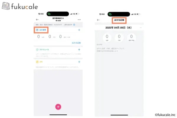 その後、[日付]を設定したあとに[出席]を選ぶだけで簡単に登録できます。
