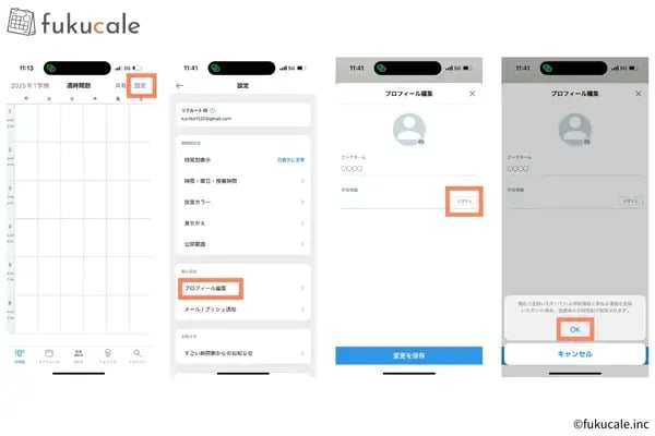 ※「現在ご登録いただいている学校情報と異なる情報を登録いただいた場合、登録済みの時間割が削除されます」といった注意書きが表示されます