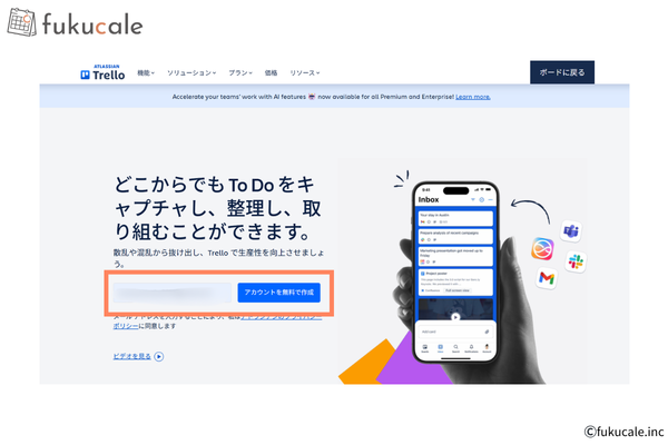 まずはTrelloのアカウントを作成する必要があります。会員登録の手順は、次の通りです。