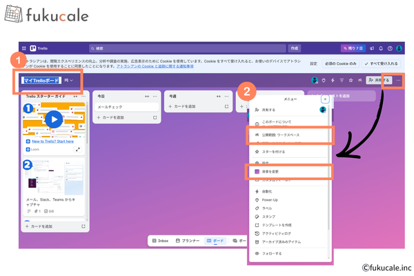 初期状態で用意されているボードの名前や公開範囲を自分好みに変更することから、はじめると良いでしょう。
