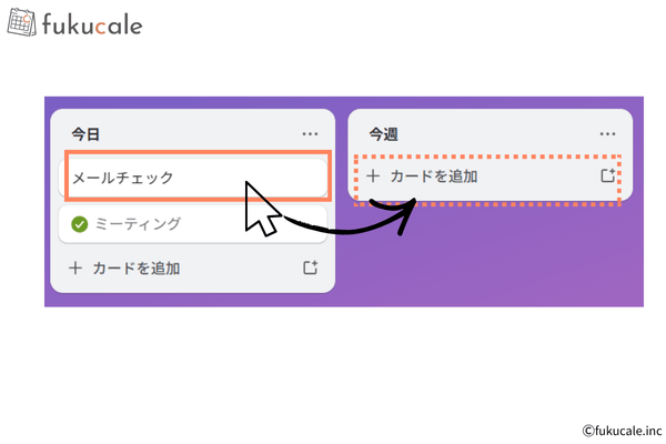 ⑤ドラッグアンドドロップでカードを動かして進捗を更新する