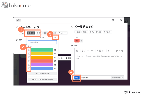 カードに色付きの「ラベル」を貼ることで、詳細画面を開かずに重要度やカテゴリを瞬時に判別できます。