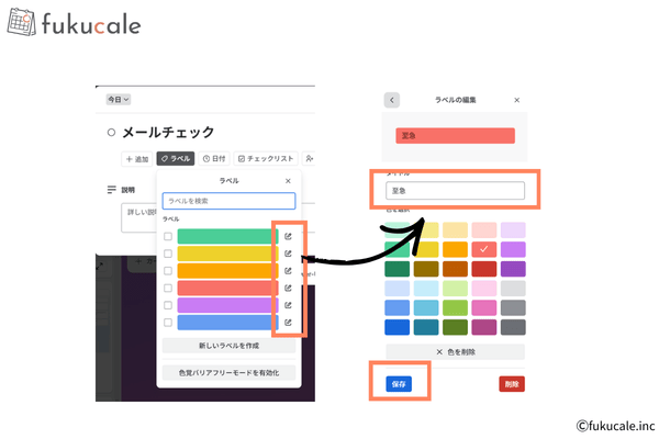 ラベルの編集アイコンをクリックすると、名前(例:至急、重要)を設定できます。