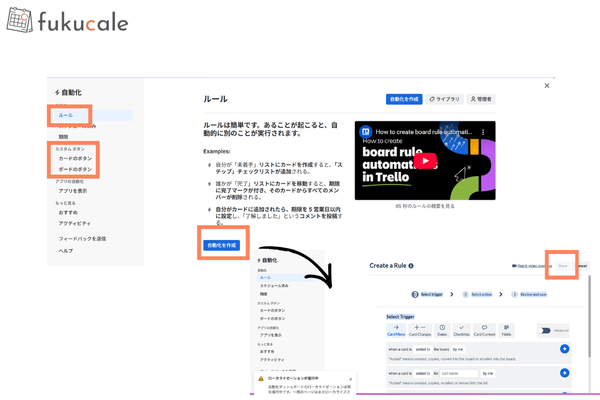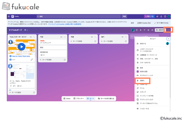 - ボード右上の[⋯]をクリックし、[自動化]を開く